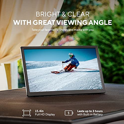 Yoidesu Portable TV 15.4in, 1080P TFT LED Digital TV with 1800mAh Rechargeable Battery, Small Television Analog TV for Car Travle Camping, Suppport FM Radio USB with Bracket and Remote
